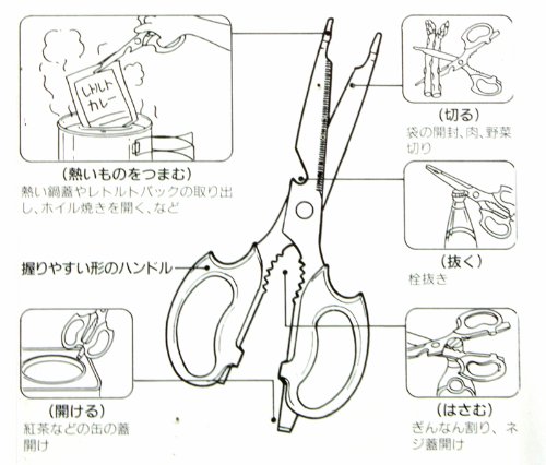 もちろんウィンナーとかの袋を開けるときにも便利ですし、先っぽがペンチになっているのでアチアチの網をつかんだりするときにも便利です。
